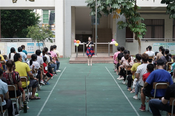 九點(diǎn),培訓(xùn)拉開帷幕。第一部分為集中培訓(xùn),新生與家長(zhǎng)們齊聚國(guó)旗下,聆聽李嬌艷校長(zhǎng)的家庭教育培訓(xùn)講話。會(huì)上,李校長(zhǎng)感謝家長(zhǎng)們?cè)诎倜χ谐榭諄韰⒓右荒昙?jí)培訓(xùn)會(huì),贊揚(yáng)家長(zhǎng)們對(duì)孩子成長(zhǎng)的關(guān)心與重視。她以風(fēng)趣幽默的語言,別開生面地分享了對(duì)于教育的理解,指出家長(zhǎng)作為孩子的導(dǎo)航員與終身教師,要樹立正確的教育觀念,采用科學(xué)的教養(yǎng)方式,堅(jiān)持終身學(xué)習(xí),以身作則,營(yíng)造和諧的成長(zhǎng)環(huán)境。