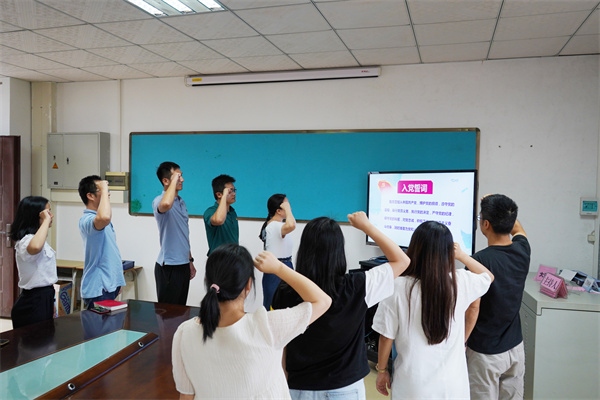 鮮紅的黨旗下,領(lǐng)誓人李嬌艷書記帶領(lǐng)著黨員同志們一起高舉右手,莊嚴(yán)宣誓:“我志愿加入中國(guó)共產(chǎn)黨……隨時(shí)準(zhǔn)備為黨和人民犧牲一切,永不叛黨?!辩H鏘恢宏的誓詞,擲地有聲的誓言,強(qiáng)烈震撼著在場(chǎng)的每一位黨員。一字一句,神圣而豪邁,表達(dá)了對(duì)中國(guó)共產(chǎn)黨的無(wú)限忠誠(chéng)。