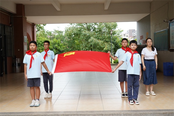 雄壯有力的出旗曲中,黨旗緩緩入場(chǎng)。全體同學(xué)肅立,向迎風(fēng)飄揚(yáng)的黨旗敬禮,一顆顆躍動(dòng)的心煥發(fā)著激動(dòng)和喜悅,表達(dá)著對(duì)黨由衷的熱愛。少先隊(duì)大隊(duì)輔導(dǎo)員羅錦老師帶領(lǐng)全體隊(duì)員一起回顧了中國(guó)共產(chǎn)黨101周年的宏偉業(yè)績(jī)和香港回歸25周年的不平凡歷程,號(hào)召隊(duì)員們緊握紅色接力棒,在星星火炬的照耀下,聽黨話、跟黨走,用實(shí)際行動(dòng)迎接黨的二十大勝利召開。
