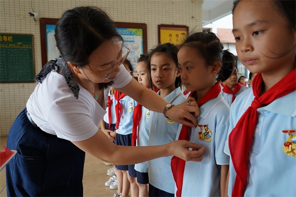 隨后,少工委主任李嬌艷校長(zhǎng)親切地為獲得“紅領(lǐng)巾獎(jiǎng)?wù)隆币恍钦碌?20名少先隊(duì)員和3個(gè)少先隊(duì)集體頒發(fā)一星獎(jiǎng)?wù)?。閃亮的獎(jiǎng)?wù)略陉?duì)員們胸前綻放出耀眼的光芒,這一刻,新時(shí)代少先隊(duì)員的自豪感油然而生。緊接著,被授予“大涌鎮(zhèn)優(yōu)秀少先隊(duì)員”的18名少先隊(duì)員、2個(gè)少先隊(duì)中隊(duì)也收獲了獎(jiǎng)狀,李校長(zhǎng)向獲獎(jiǎng)的少先隊(duì)員表示祝賀,鼓勵(lì)全體少先隊(duì)員要從小立志向、修品行、練本領(lǐng),讓紅色基因薪火相傳,為實(shí)現(xiàn)偉大中國(guó)夢(mèng)而努力學(xué)習(xí)。