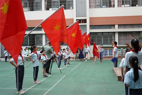 活動尾聲,大隊輔導(dǎo)員羅錦老師帶領(lǐng)全體隊員呼號:“準(zhǔn)備著,為共產(chǎn)主義事業(yè)而奮斗!”“時刻準(zhǔn)備著!”激昂的呼號聲,在操場上空飄蕩。
