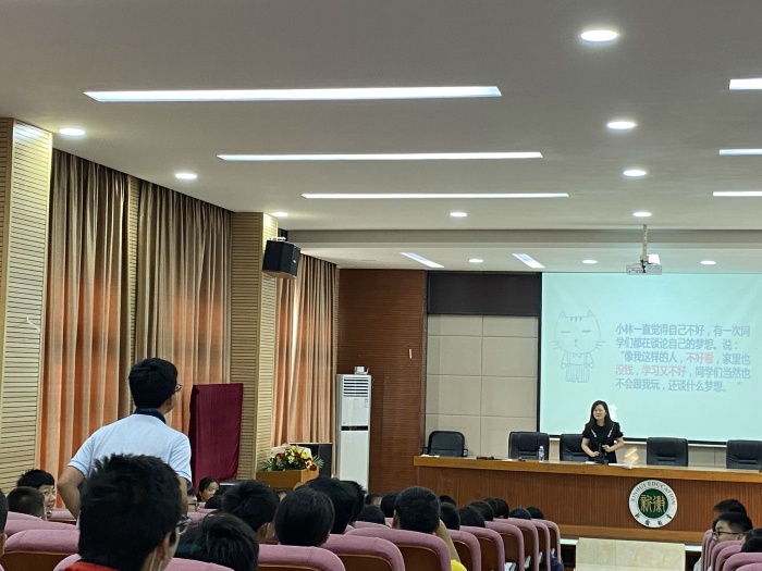 面對(duì)充滿各種挫折的人生,你會(huì)有什么樣的感受,你會(huì)怎么面對(duì)呢?在“生命的饋贈(zèng)”環(huán)節(jié)中,面對(duì)老師的提問,同學(xué)們積極回應(yīng),各抒己見。講座氣氛熱烈,達(dá)到了良好的教育效果。