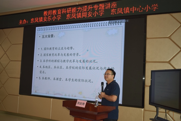 “求木之長者,必固其根本,欲流之遠者,必浚其泉源”。為進一步扎實推進教研課題工作的深入開展,提升全體教師的教育教學(xué)科研能力,8月31日上午東鳳鎮(zhèn)安樂小學(xué)、同安小學(xué)和中心小學(xué)三校聯(lián)合特邀中山市教育教學(xué)研究室郭躍輝老師為教師們帶來《教育科研課題的選題與申報》專題講座。