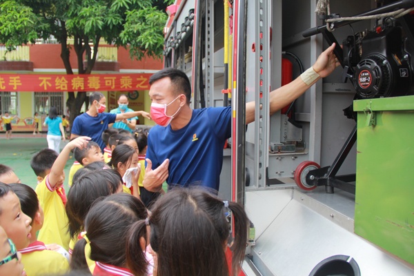 隨后,消防員詳細(xì)介紹了各種應(yīng)急消防車的功能以及消防車內(nèi)各種消防設(shè)備的用途,讓同學(xué)們了解了許多消防車上的“小秘密”,各式各樣的消防器材裝備深深地吸引了同學(xué)們,讓他們大開(kāi)眼界。消防員還向?qū)W生們講解了如何防止火災(zāi)發(fā)生、正確的救火方法以及火災(zāi)發(fā)生后怎樣采取自救措施逃生等知識(shí)。
