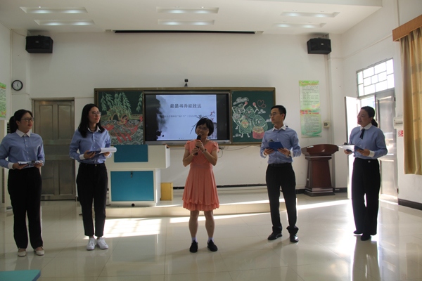 活動(dòng)現(xiàn)場(chǎng),教師們以經(jīng)典為魂,以誦讀為媒,他們精神飽滿,全力以赴,各顯身手,給在場(chǎng)的評(píng)委和教師呈現(xiàn)了一場(chǎng)精彩紛呈的視聽盛宴:語文科組以朗誦與吟唱相結(jié)合的方式給大家?guī)砹恕兑宦窌?,一生陽光》,時(shí)而深情款款,時(shí)而慷慨激昂,讓中華經(jīng)典的千古風(fēng)韻在教師們心中激蕩;綜合科組獻(xiàn)上朗誦詩篇《我們一定能打贏這場(chǎng)戰(zhàn)“疫”》,用鏗鏘有力的聲音展示戰(zhàn)勝疫情的精神面貌;數(shù)學(xué)科組的《邊城戰(zhàn)役》向所有為抗疫做出努力和奉獻(xiàn)的人民致敬;英語科組的《天涯何處覓知音》更是美輪美奐地展示了英語老師的朗誦素養(yǎng),陣陣?yán)首x,聲聲入情。此外,還有四位年輕新教師的個(gè)人朗誦《與你在一起》,飽滿深情,感人心扉,詩與情的高度契合博得了臺(tái)下觀眾的陣陣掌聲。