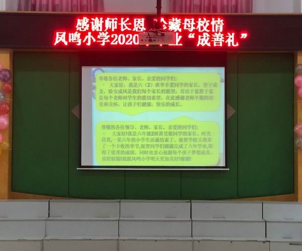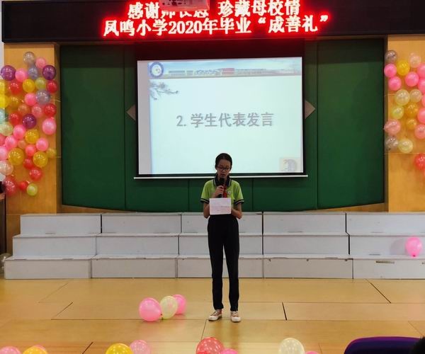 本次典禮分為三個(gè)篇章:難忘母校篇、難忘恩師篇和感恩父母篇。一段溫馨的視頻“青春紀(jì)念冊”拉開了畢業(yè)典禮的帷幕,一起回顧了六年來在鳳鳴小學(xué)的學(xué)習(xí)生活。緊接著,劉松校長為全體畢業(yè)班同學(xué)致辭,愿鳳鳴學(xué)子有理想,有擔(dān)當(dāng),謹(jǐn)記校訓(xùn),在新的學(xué)習(xí)征程里,乘風(fēng)破浪,直掛云帆。畢業(yè)班學(xué)生代表梁栩麗同學(xué)發(fā)言表達(dá)出了每一名六年級(jí)學(xué)生的心聲,感謝老師,感謝同學(xué),感謝父母。盡管這次畢業(yè)典禮,家長們不能現(xiàn)場參與,但是他們通過視頻,真誠地感謝鳳鳴小學(xué)對孩子們的悉心教育,祝愿孩子們能保持終身學(xué)習(xí)的信念,學(xué)有所成。