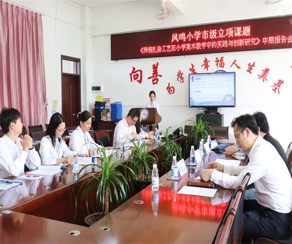 12月7日上午,東鳳鎮(zhèn)鳳鳴小學(xué)舉行了中山市教育科研2020年度青年課題《傳統(tǒng)扎染工藝在小學(xué)美術(shù)教學(xué)中的實(shí)踐與創(chuàng)新研究》課題研究的中期匯報(bào)會(huì)。本次會(huì)議邀請(qǐng)了中山市教育教學(xué)研究室美術(shù)教研員沈文老師、東鳳鎮(zhèn)教育和體育事務(wù)中心藝術(shù)專干鄒營(yíng)發(fā)老師、東鳳鎮(zhèn)教育和體育事務(wù)中心陳林方老師蒞臨指導(dǎo),劉松校長(zhǎng)、莊惠茜副校長(zhǎng)以及課題組全體成員參會(huì)。