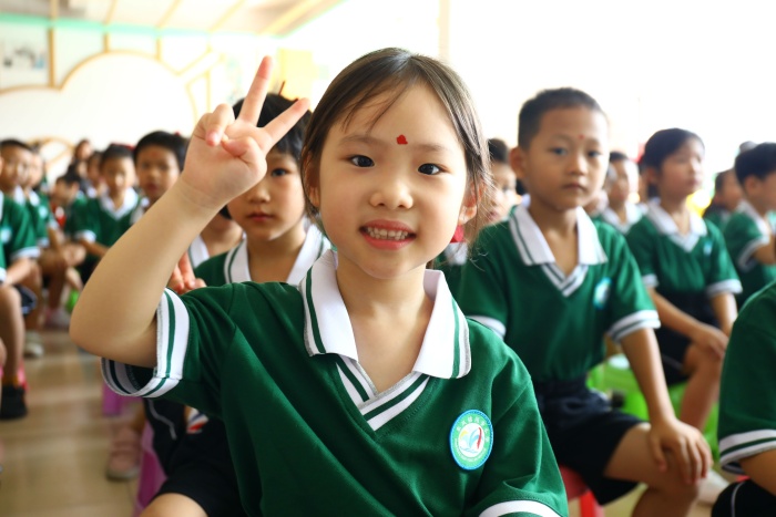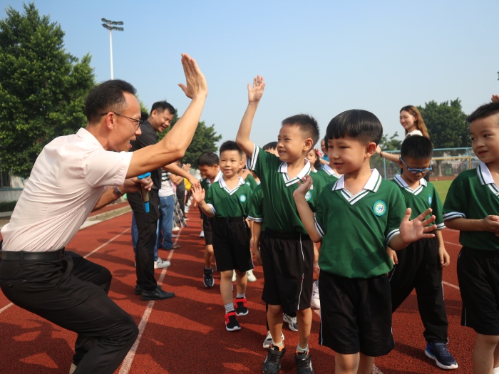 上午八點(diǎn)三十分,伴隨著歡快的音樂,教師們列在操場兩側(cè),以微笑和掌聲歡迎一年級新生入場,祝賀孩子們成為小學(xué)生,迎接新的學(xué)習(xí)生活。接著,阮麗霞副主任宣布活動正式開始。