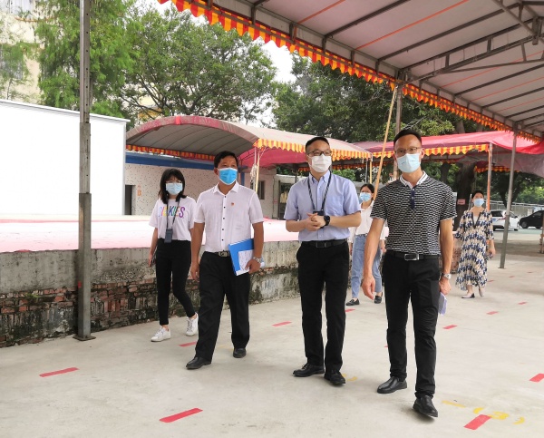 中山市第三批學(xué)生復(fù)學(xué)在即,為全面保障全體師生健康,安全有序地迎接學(xué)生返校復(fù)課開(kāi)學(xué)工作,2020年5月13日上午,東鳳鎮(zhèn)紀(jì)委副書(shū)記、監(jiān)察室主任黎慶恩一行到同安小學(xué),對(duì)疫情防控和返校復(fù)學(xué)準(zhǔn)備工作做督導(dǎo)檢查,羅權(quán)鎏校長(zhǎng)、黃炎有副校長(zhǎng)等學(xué)校行政全程陪同。