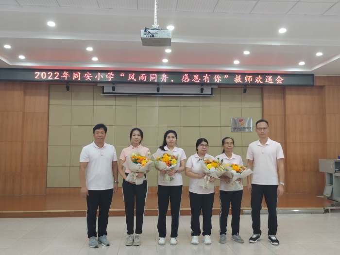 會議最后,學(xué)校為即將離開同安小學(xué)的梁毓楨老師、文清怡老師、余淑瑩老師、唐順興老師舉行了一個小小的歡送會,希望幾位老師在新的工作崗位再創(chuàng)輝煌。