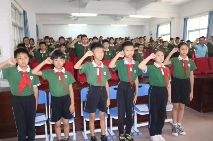 接著,中山市優(yōu)秀班主任鐘亮老師作為教師代表激情演講,他表達(dá)了自己將繼續(xù)全心全意為學(xué)生服務(wù),恪守師德,不負(fù)韶華的決心。隨后學(xué)生代表李妍姍發(fā)言。雖然語(yǔ)言稚嫩,但“樹(shù)立遠(yuǎn)大目標(biāo),不負(fù)青春,做好時(shí)代接班人”的理想?yún)s一覽無(wú)余。然后,學(xué)校法制副校長(zhǎng)盧日江以“安全無(wú)憂(yōu),快樂(lè)成長(zhǎng)”為主題給大家上了一堂生動(dòng)的安全法制課。最后同學(xué)們莊嚴(yán)宣誓,“請(qǐng)黨放心 強(qiáng)國(guó)有我”,洪亮的聲音響徹校園。