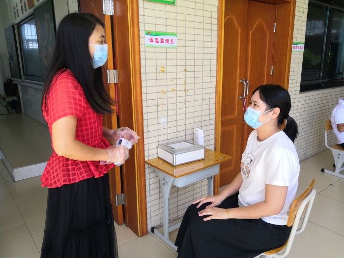 此次模擬演練由教師扮演“學生”,重點模擬了“師生入校晨檢”“師生中午就餐”“上課突發(fā)身體不適情況處理”等六個不同場景,為安全有序開學保駕護航。整個演練過程分工明確,有條不紊,報告程序規(guī)范,處理方式得當。模擬演練后,林紅副主任對疫情防控演練進行了總結(jié)。她肯定了大家配合默契、演練環(huán)節(jié)嫻熟,同時提醒全校教職員工要思想上重視、明確責任,要堅持做好疫情防控的常態(tài)化工作,將疫情防控落實到校園的每一個環(huán)節(jié)。