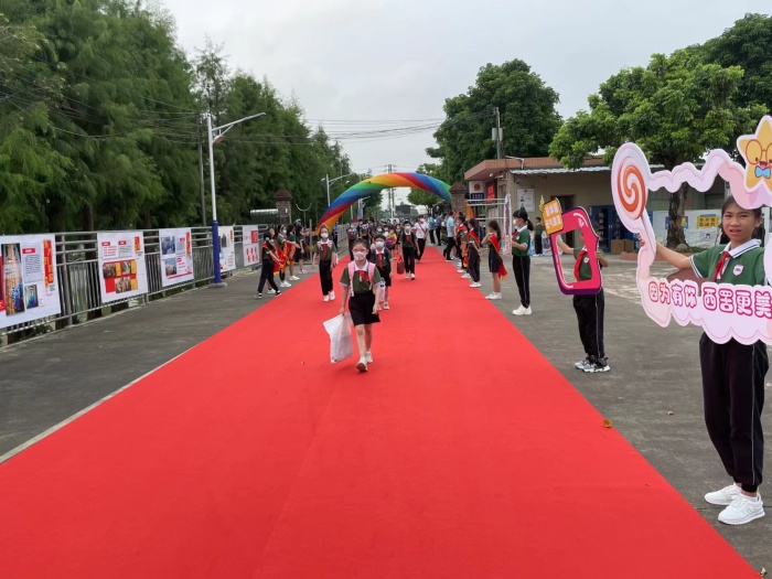 早在開學(xué)前夕,班主任老師就對教室進(jìn)行了精心的布置,給每位同學(xué)以“家”的感覺。晨光傾灑在老師和同學(xué)們燦爛的笑臉上,洋溢著溫馨與愉悅。同學(xué)們在值日隊干和老師們的指引下,有序測溫進(jìn)入校門。一張張稚嫩的臉龐,一雙雙求知的眼睛,伴隨著輕快的腳步,穿過歡迎的拱門,沿著紅地毯步入學(xué)校,按下開啟人生嶄新一頁的手印。