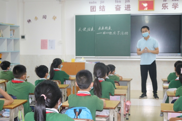 當(dāng)天早上7點(diǎn)整,學(xué)校校長崔杰文、值班行政、全體教師、駐校醫(yī)生、家長志愿者等早早等候在校門口,迎接孩子們回校,測體溫、洗手、走指定路線,到達(dá)久違的教室。孩子們溢滿臉的喜悅,連步伐都雀躍著。在學(xué)校精心安排下,孩子們在觀看視頻“天使歸來,英雄開講”中開啟了一天的學(xué)習(xí)生活……讓人難忘的鏡頭還真不少。“天使歸來,向陽花開”升旗儀式,崔校長熱情洋溢的致辭、梁慧副校長、林紅副主任為線上學(xué)習(xí)摘星小達(dá)人頒獎(jiǎng)、高佩瑜同學(xué)嚴(yán)以律己的表態(tài)發(fā)言,讓所有孩子都心潮澎湃;“天使歸來,未來我來”分享會(huì),孩子們或奮筆疾書中或在輕聲交談中,分享著假期感受、對生命的敬畏、對未來的憧憬;疫情下一日常規(guī)的訓(xùn)練:就餐、如廁、洗手、排隊(duì)……和著瑯瑯上口的兒歌,在實(shí)操中學(xué)習(xí)防疫知識,鍛煉人格德行。
