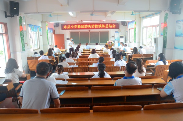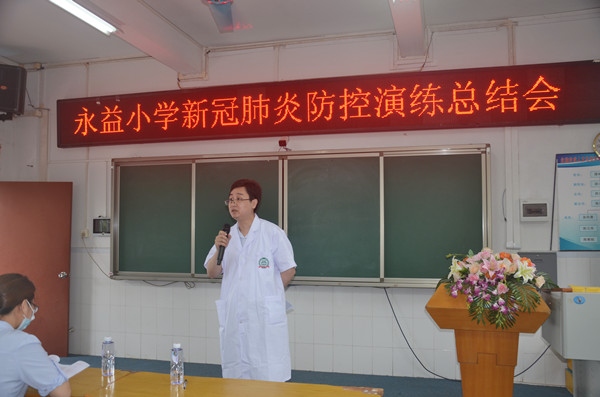 演練結束后,全體教師與領導均集中階梯室進行簡短的總結會。會上,鎮(zhèn)教辦吳正輝教研員、賴醫(yī)生、卜醫(yī)生在肯定永益小學防疫應急演練工作的同時,針對一些處置細節(jié),提出了更專業(yè)的、更精細的指導意見。教師們認真聽講,并紛紛在筆記本上認真記錄。