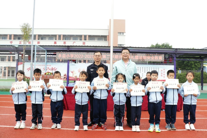 2022學(xué)年度第二學(xué)期開學(xué)典禮暨法制安全教育在學(xué)校足球場(chǎng)上舉行。全體師生齊聚一堂,鏗鏘有力的國(guó)歌在校園回響,五只小“益”兔活蹦亂跳地跑出來,給大家送上祝福,也拉開了開學(xué)典禮的序幕。首先由法制副校長(zhǎng)匡叔叔給同學(xué)們上法制安全教育課,同學(xué)們認(rèn)真聆聽,收獲滿滿;接著是永益小學(xué)蔣漢云校長(zhǎng)為開學(xué)典禮致辭,他結(jié)合五育并舉的理念,以學(xué)校的“五益”文化為導(dǎo)向,以培養(yǎng)五益少年為目標(biāo),勉勵(lì)學(xué)生新學(xué)期做:挺膺擔(dān)當(dāng)?shù)摹皭蹏?guó)兔”、樂學(xué)善思的“智慧兔”、陽(yáng)光健體的“活力兔”、和善有禮的“文明兔”、崇尚勞動(dòng)的“勤快兔”,帶上自己的干勁、闖勁、鉆勁啟航新征程;然后是新教師代表匡老師和畢業(yè)班代表陳紀(jì)樺發(fā)言,給全校師生寄予新學(xué)期祝福與殷切厚望;最后進(jìn)行“五益少年”頒獎(jiǎng)典禮,希望獲獎(jiǎng)同學(xué)在新的學(xué)期繼續(xù)勇往直前,成為大家學(xué)習(xí)的榜樣。