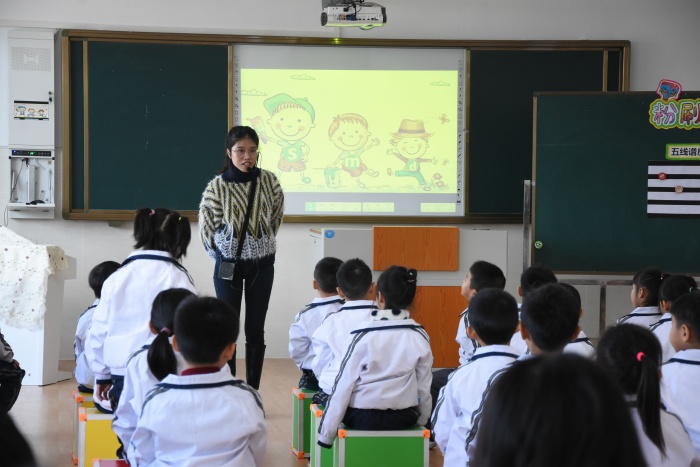此次活動(dòng)在觀摩課例中拉開序幕。孫美婷老師為全體老師展示了人民音樂出版社一年級下冊第七課歌曲《粉刷匠》一課。孫老師結(jié)合柯達(dá)伊音樂教學(xué)法,讓學(xué)生初步認(rèn)識五線譜并認(rèn)知s-m-d三音在五線譜中的位置,并能用準(zhǔn)確的聲音學(xué)會歌曲。課堂上充分應(yīng)用了信息技術(shù)希沃白板融合教學(xué),鼓勵(lì)學(xué)生積極動(dòng)手探究,培養(yǎng)學(xué)生的音樂素養(yǎng)。