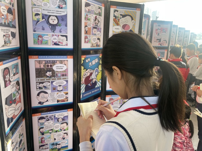活動中,學(xué)生們還認真觀看了“全民禁毒工程六進漫畫”展覽,生動形象、圖文并茂的漫畫讓學(xué)生在趣味中了解更多關(guān)于禁毒的知識,深化禁毒觀念,并能號召身邊的家人、朋友樹立正確的人生觀、價值觀,養(yǎng)成健康文明的生活方式,遠離毒品。