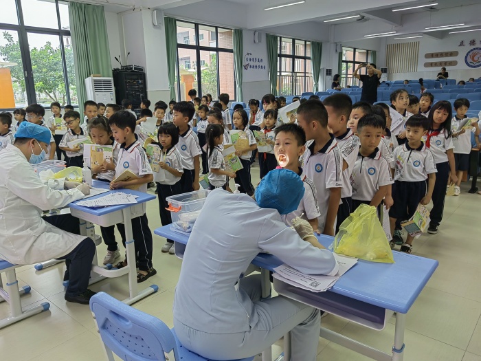 隨后,同學(xué)們在老師的精心組織下有序排隊,讓醫(yī)生逐一檢查牙齒,醫(yī)生們根據(jù)檢查給出了專業(yè)的指導(dǎo)意見。接下來,家長們還將根據(jù)診斷意見,以自愿為原則前往門診做免費的窩溝封閉。