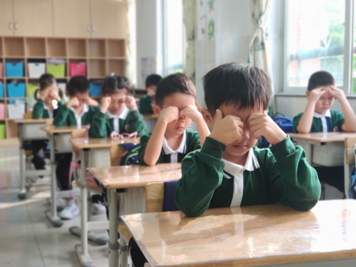 10月15日、16日比賽過程中,學(xué)生精神抖擻,端坐整齊,隨著悠揚(yáng)的音樂響起,認(rèn)真而有節(jié)奏地按揉穴位,動(dòng)作規(guī)范,態(tài)度認(rèn)真,享受著做眼保健操帶來的放松和愉悅。張鵬副校長帶領(lǐng)評(píng)委們從各班的精神面貌、個(gè)人衛(wèi)生、動(dòng)作要領(lǐng)等方面進(jìn)行評(píng)比反饋。