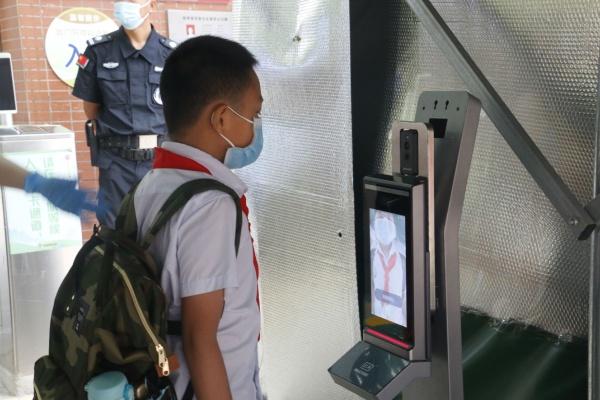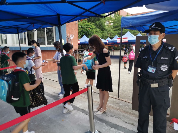 “同學(xué)們,請(qǐng)間隔一米以上距離,有序進(jìn)?!痹绯?時(shí)許,朗晴小學(xué)大門口,同學(xué)們背著書包、戴著口罩,經(jīng)測(cè)溫顯示正常后陸續(xù)進(jìn)入校園。值日教師、保安、家長(zhǎng)志愿者、輔警、民警等在校門口精心維持秩序,為學(xué)生保駕護(hù)航。學(xué)校精心布置體溫檢測(cè)通道,希望學(xué)生從入校門開始,就充滿“回家”的感覺,幫助學(xué)生增強(qiáng)從線上到線下的適應(yīng)力。