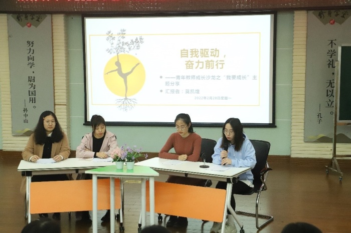 活動(dòng)第二環(huán)節(jié)是由周詩(shī)瑩、何欣怡、王澤歆和莫?jiǎng)P煌四位青年教師代表分享自己工作以來(lái)的收獲與感悟。周詩(shī)瑩老師分享的主題是:真抓實(shí)干出成效,她從班干部的培養(yǎng)、言傳身教這兩個(gè)方面講述了自己兼任班主任和語(yǔ)文老師所積累的經(jīng)驗(yàn)。她把“認(rèn)真”作為自己的工作準(zhǔn)則,每天利用課余時(shí)間輔導(dǎo)學(xué)生,鉆研教材,而這一切默默付出的努力成為了她迅速成長(zhǎng)的催化劑。何欣怡老師圍繞“反思與學(xué)習(xí)”進(jìn)行分享,她把自身作為新教師在工作中出現(xiàn)各種問(wèn)題進(jìn)行了深入剖析和反思,并在許多經(jīng)驗(yàn)豐富的老師們溫暖的鼓舞下,她發(fā)現(xiàn)自己重新?lián)碛辛嗽诮虒W(xué)中展現(xiàn)自我的勇氣,終于在一次次成功的課堂教學(xué)中得以蛻變。王澤歆老師結(jié)合自己從教多年的寶貴經(jīng)歷中提出了“積極主動(dòng)是促進(jìn)教師專業(yè)成長(zhǎng)的利器”的觀點(diǎn),作為一名合格的教師,教齡有多長(zhǎng)不是衡量專業(yè)能力的標(biāo)準(zhǔn),只有扎實(shí)的基本功和持續(xù)性地學(xué)習(xí),才能豐富自身。莫?jiǎng)P煌老師分別從學(xué)會(huì)自主、培養(yǎng)自信和他人的鼓勵(lì)這三個(gè)方面講述了她教學(xué)中遇到的難題與收獲的成果,一步一個(gè)腳印,相信努力,不害怕失敗,是她得到大家認(rèn)可的鑰匙。在如此溫馨的分享交流中,在場(chǎng)的老師們認(rèn)真聆聽(tīng),受益匪淺。