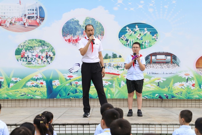 上午八點(diǎn),東區(qū)水云軒小學(xué)的操場(chǎng)上熱鬧非凡,軒小全體師生歡聚一堂,共同慶祝第三十六個(gè)教師節(jié)。一曲由學(xué)校合唱隊(duì)表演的《聽(tīng)我說(shuō)謝謝你》四人聯(lián)唱拉開(kāi)了活動(dòng)的序幕。遠(yuǎn)赴廣東饒平縣浮濱鎮(zhèn)中心小學(xué)支教的張老師,在支教一年后重歸校園,向全校師生講述了自己支教過(guò)程中的暖心故事。張老師說(shuō),他支教的學(xué)校四面環(huán)山,學(xué)生每天要走半個(gè)小時(shí)以上的路程上學(xué),下雨天時(shí)常??吹胶⒆觽兩砩?、腳上都是泥土,有的孩子更是因?yàn)榧彝ヘ毨е荒艽┮浑p拖鞋上學(xué)。校園里的田徑場(chǎng)地上都是泥沙,凹凸不平,籃球架也因使用多年而變得破舊不堪。面對(duì)這樣的環(huán)境,這些孩子并沒(méi)有因此放棄學(xué)習(xí),每天早早就來(lái)到學(xué)校學(xué)習(xí)。在支教的一年里,張老師把陽(yáng)光大課間活動(dòng)引入該校,用心策劃和組建學(xué)校田徑隊(duì),積極開(kāi)展體育教研活動(dòng),讓山區(qū)的孩子們體驗(yàn)到了規(guī)范的體育教學(xué)帶給他們的健康與快樂(lè)。