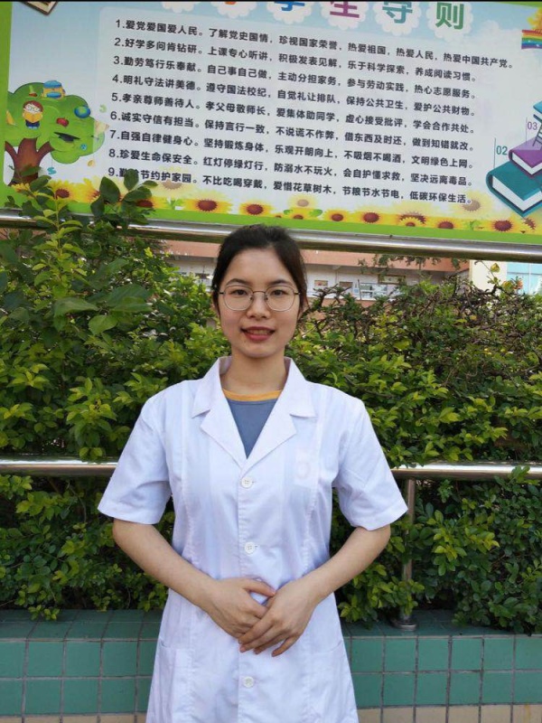 陳婷婷老師既是學(xué)校的校醫(yī),也是衛(wèi)生教師,每天面對(duì)著活潑可愛(ài)的小學(xué)生,她的日常工作是幫助他們學(xué)習(xí)、了解、掌握有關(guān)預(yù)防疾病、合理膳食、合理用藥等維護(hù)健康的知識(shí)與技能,增強(qiáng)自我主動(dòng)健康意識(shí),不斷提高健康管理能力??粗⒆觽兊某砷L(zhǎng),陳婷婷老師覺(jué)得很有成就感,很享受這份工作。