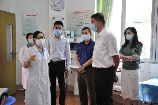 周俊峰查看了校門口體溫檢測設備和學生緩沖區(qū)的設置情況,詢問了校醫(yī)室和觀察區(qū)的使用情況,檢查了布置溫馨的教室,聽取了校長陳侃對疫情防控期第二批返校復學工作的安排。周俊峰充分肯定了學校疫情防控期第二批返校復學的相關(guān)舉措。