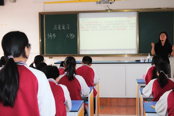 隨后,大家移步多媒體教室,聆聽由遠洋中學李瑩老師帶來的《名著復習之人物、情節(jié)》復習備考課。李老師用“梳理情節(jié),起承轉(zhuǎn)合--勾連人物,求同存異--遷移內(nèi)化,學以致用”三個主要環(huán)節(jié)為大家展示了一節(jié)精彩的優(yōu)質(zhì)課。