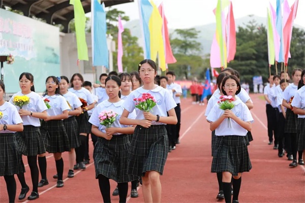 伴著雄壯有力的運(yùn)動(dòng)員進(jìn)行曲,解說(shuō)鏗鏘有力,氣勢(shì)磅礴。在國(guó)旗隊(duì)的引領(lǐng)下,鮮花彩旗方陣、班級(jí)方陣、教師方陣依次走過(guò)主席臺(tái)。他們步伐矯健,口號(hào)嘹亮,展示充滿創(chuàng)意,充分展現(xiàn)了遠(yuǎn)洋學(xué)子不斷進(jìn)取、強(qiáng)國(guó)有我的精神風(fēng)貌。