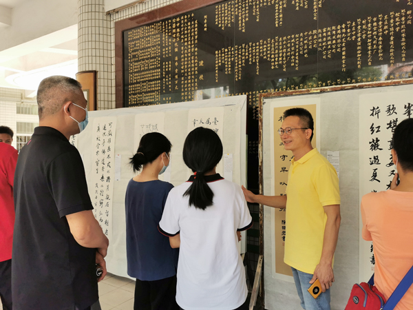 2022年6月28日,中山市東區(qū)中學(xué)美術(shù)書(shū)法作品展隆重開(kāi)幕,參加此次展覽的有東區(qū)中學(xué)謝柏芳校長(zhǎng)、馬榮林副校長(zhǎng)、高宏副校長(zhǎng)、教導(dǎo)處尹冬枚主任、班主任和全體藝術(shù)生家長(zhǎng)。謝柏芳校長(zhǎng)致開(kāi)幕詞,謝校首先對(duì)此次展覽給予充分的肯定,并指出在當(dāng)前的國(guó)際背景下要增加文化自信,而中國(guó)書(shū)畫(huà)屬于中國(guó)傳統(tǒng)文化精髓,要充分繼承和發(fā)揚(yáng)。最后祝愿學(xué)生們?cè)诤材珪?shū)香中取得理想成績(jī)!