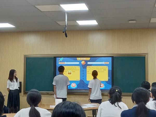 楊婷婷老師以必修三Unit 5 Grammar情態(tài)動詞為教學(xué)內(nèi)容,向我們展示了一節(jié)內(nèi)容充實、節(jié)奏流暢,互動性強,邏輯性強的語法課,便于學(xué)生內(nèi)化與吸收;劉春江老師以必修三U4 reading and thinking為教學(xué)內(nèi)容,向我們展示了一節(jié)緊貼課文、貼近學(xué)生實際的閱讀課;孟希桐老師以期末作文復(fù)習(xí)為主題,以本學(xué)期寫過的、背誦過的作文為基礎(chǔ),為同學(xué)們總結(jié)歸納了日語寫作的基本類型,并在課上引導(dǎo)學(xué)生找出作文里面精彩語句,并鼓勵學(xué)生學(xué)會應(yīng)用在自己的作文中;馮燕老師以選擇性必修一U1 Reading為教學(xué)內(nèi)容,緊密結(jié)合單元主題People of achievement,以鐘南山院士的事跡為導(dǎo)入,講述了諾貝爾獎得主屠呦呦發(fā)現(xiàn)青蒿素的過程,使學(xué)生們增強了不畏困難、永不放棄的意識;廖哲老師以Book?3?Unit4?課外拓展閱讀What if we spun the other way為主題,向我們展示了一節(jié)英語+地理的跨學(xué)科融合初探課程,以“如果地球自轉(zhuǎn)方向相反,我們的世界現(xiàn)在會是什么樣子的”的問題為導(dǎo)入,激發(fā)學(xué)生閱讀文章的積極性,課后仍有部分同學(xué)關(guān)于這個問題進行著激烈的討論。