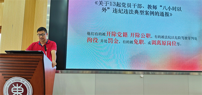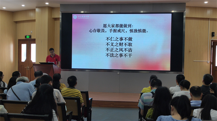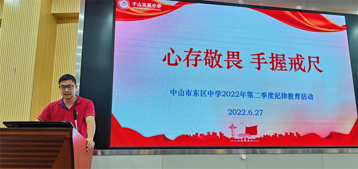 為持續(xù)加強(qiáng)學(xué)校黨風(fēng)廉政建設(shè),筑牢廣大黨員干部和教職工拒腐防變的思想道德防線,6月27日下午,中山市東區(qū)中學(xué)舉行主題為“心存敬畏 手握戒尺”的2022年第二季度紀(jì)律教育學(xué)習(xí)月活動(dòng)。活動(dòng)由校黨總支委員楊群同志主持,全體教職工參與學(xué)習(xí)。