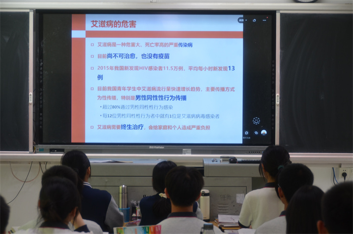 講座開始,來副所長以一個通關(guān)小游戲激起了學(xué)生們的學(xué)習(xí)欲望,留下小懸念。以小王的故事,讓同學(xué)們對艾滋病有了進一步了解。接下來,來副所長深入淺出地講解了艾滋病的危害、艾滋病的主要傳播途徑、艾滋病病毒的特點等相關(guān)知識,用生動的事例讓學(xué)生們深刻的了解了艾滋病的危害,了解了有效防治艾滋病的具體措施以及發(fā)生高危行為后的應(yīng)對方法(如必要時可采用藥物阻斷、早發(fā)現(xiàn)、早診斷),講者講得認(rèn)真,聽者聽得專注。