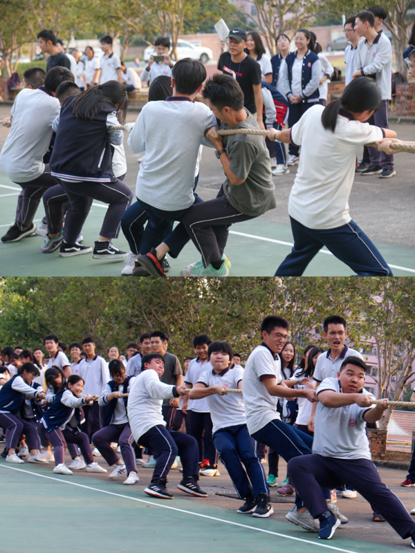 賽場上,各班早已排兵列陣,摩拳擦掌,躍躍欲試。一根長長的拔河繩,凝聚著競賽雙方的勇氣、智慧和力量,承載著東區(qū)中學學生的激情、自信和活力。