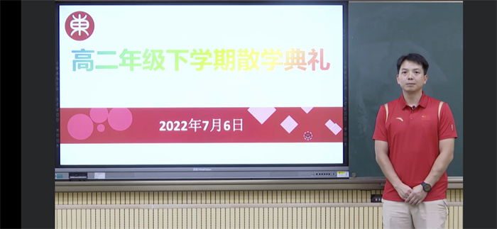 花開有期,歲月不停,夏日蟬鳴,吟唱希冀。不知不覺間一個學期又畫上了圓滿的句號,高二年級全體師生在成長的道路上又邁出了堅實的一步。2022年7月6日,隨著期末考試的結束,高二年級線上散學禮準時開始,會議由高二年級主任黃天濤主任主持。