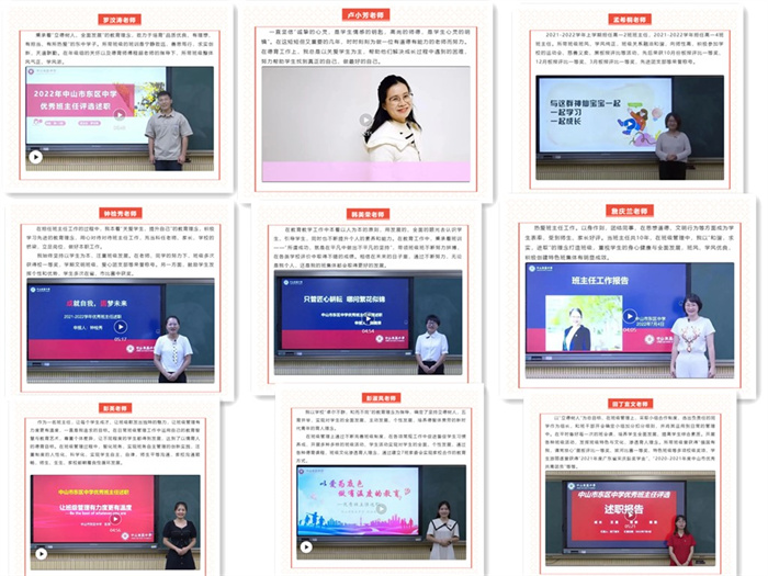 本次評選活動通過個人申報、年級審核,共推選12名優(yōu)秀班主任參加評選。12名優(yōu)秀班主任候選人精心錄制了個人述職視頻,通過一系列班級管理經(jīng)驗的分享,展示了自己在育人理念和成績,抒發(fā)了對班主任工作的熱愛,彰顯了對教育事業(yè)的飽滿熱情,展現(xiàn)出了東中人踔厲奮發(fā)、昂揚向上的精神風(fēng)貌。