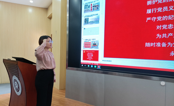 黨課結(jié)束,在孟書(shū)記的帶領(lǐng)下,全體黨員重溫了入黨誓詞。全體黨員不忘初心,在鏗鏘誓言中汲取前行的力量。