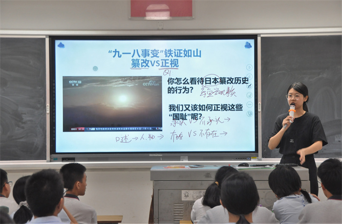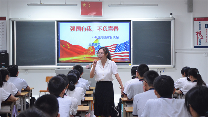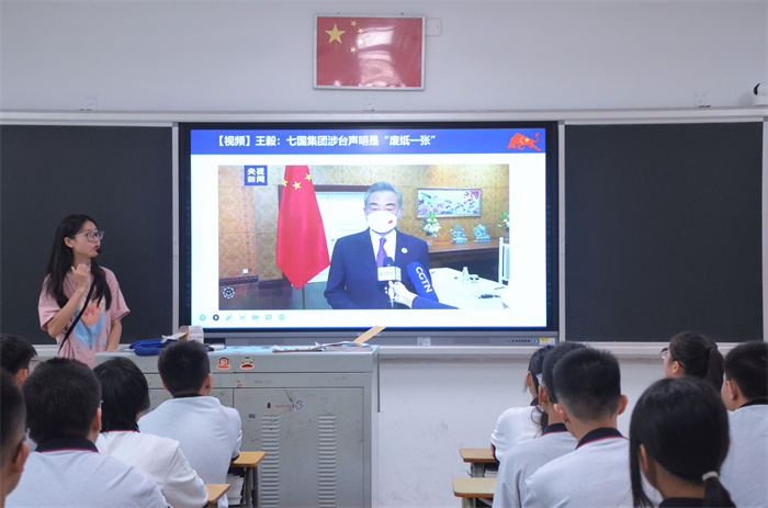 班會(huì)課上,有的班主任老師通過回顧歷史,從“九一八”事變展開論述;有的班主任則通過展示時(shí)事新聞,從佩洛西竄臺(tái)開始講起。班主任們從國(guó)防安全的含義、國(guó)防安全教育意義、國(guó)防安全事件、現(xiàn)代化國(guó)防建設(shè)等多個(gè)維度引導(dǎo)學(xué)生了解國(guó)防安全的重要性。