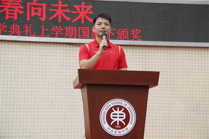 開(kāi)學(xué)典禮在肅穆莊嚴(yán)的升旗儀式中拉開(kāi)帷幕,新學(xué)期,新期待,書(shū)記第一課如約而至。在飄揚(yáng)的國(guó)旗下,東區(qū)中學(xué)黨總支謝柏芳書(shū)記面向全體師生開(kāi)設(shè)了題為《用奮斗的青春獻(xiàn)禮二十大》的講座。謝書(shū)記帶領(lǐng)同學(xué)們回顧了近年來(lái)面對(duì)災(zāi)難、社會(huì)危機(jī)黨中央的一系列反應(yīng)措施,讓同學(xué)們感受到堅(jiān)定信念跟黨走的重要性。謝書(shū)記在講話中以榮獲全國(guó)中學(xué)生半球錦標(biāo)賽高中組冠軍的東中學(xué)子為例子,闡明了少年之于黨和國(guó)家的重要性,也讓同學(xué)們意識(shí)到唯有奮斗與拼搏才能改變一切、才能贏得未來(lái)、才能為祖國(guó)與社會(huì)做出貢獻(xiàn)。同時(shí),謝書(shū)記還向全體師生公告了我校今年的高考上線情況以及中考錄取情況,激昂起同學(xué)們努力拼搏的心,為同學(xué)們想要為中國(guó)夢(mèng)奉獻(xiàn)青春的心注入磅礴的精神力量。