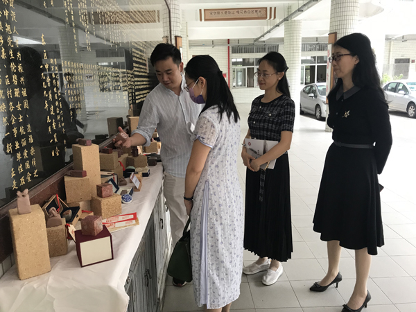 本次調(diào)研活動(dòng)由聽(tīng)課、說(shuō)課議課及匯報(bào)座談等環(huán)節(jié)組成。東區(qū)中學(xué)中華優(yōu)秀傳統(tǒng)文化中心教研組楊麗媛老師為大家?guī)?lái)一節(jié)別開(kāi)生面的中華優(yōu)秀傳統(tǒng)文化展示課——《隸書源流與賞析》。楊老師以視頻《隸書的自白》導(dǎo)入教學(xué),通過(guò)隸變的過(guò)程來(lái)展示隸書的特色,楊老師還通過(guò)情景創(chuàng)設(shè),讓學(xué)生自選部門寫簡(jiǎn)牘奏折,呈給女王,寓教于學(xué),極大激發(fā)了學(xué)生的興趣。楊老師的中華優(yōu)秀傳統(tǒng)文化展示課生動(dòng)有趣、節(jié)奏自然流暢,學(xué)生參與度高,給蒞臨本次活動(dòng)的專家留下深刻印象。