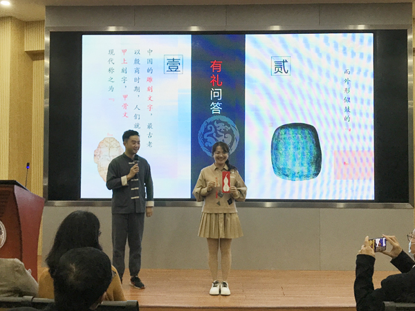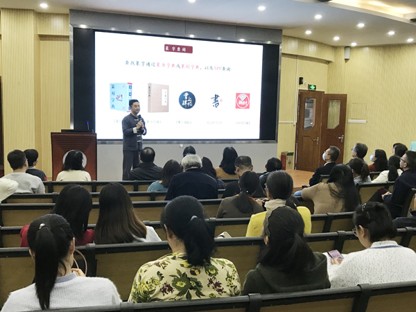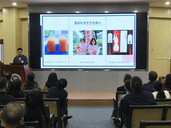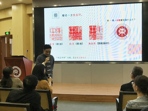 本次校本培訓(xùn)由我校中華優(yōu)秀傳統(tǒng)文化中心教研組施恒老師主講,培訓(xùn)主題為篆刻藝術(shù)專題《方寸之間精雕細(xì)琢》。講座分四個主要內(nèi)容,分別為篆刻的起源、應(yīng)用、推廣以及最后的互動。施老師通過2008年北京奧運(yùn)會”中國印”和2022年北京冬奧會“會跳舞”的運(yùn)動圖標(biāo)導(dǎo)入培訓(xùn)主題,詳細(xì)解讀并現(xiàn)場示范了如何熟練運(yùn)用篆刻的形式、篆法與刀法,他通過結(jié)合我校特有的篆刻校園文化,分享了我校近五年的篆刻文化畢業(yè)衫掠影,為大家?guī)砹艘粓錾鷦佑腥?、?nèi)涵豐富、實用性強(qiáng)的文化大餐,同時也展示了我校兩位同學(xué)在省教廳印跡中國比賽中分別取得省二、三等獎并代表廣東省參加教育部國賽的參賽作品。講座的最后,施恒老師和全校老師們進(jìn)行了更為深入的互動問答,也將學(xué)生們親手制作的許愿牌及書簽贈與了現(xiàn)場老師。