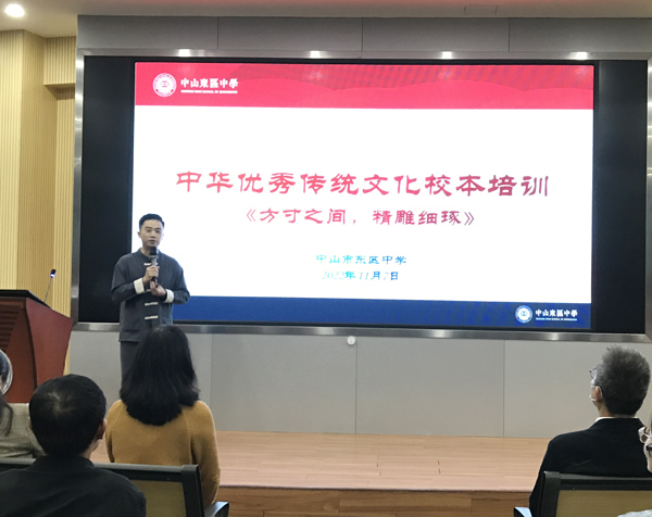 2022年11月7日下午,中山市東區(qū)中學(xué)中華優(yōu)秀傳統(tǒng)文化中心教研組在報告廳面向全體教師開展了一場別開生面的校本培訓(xùn)。
