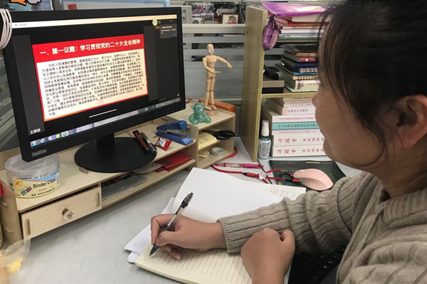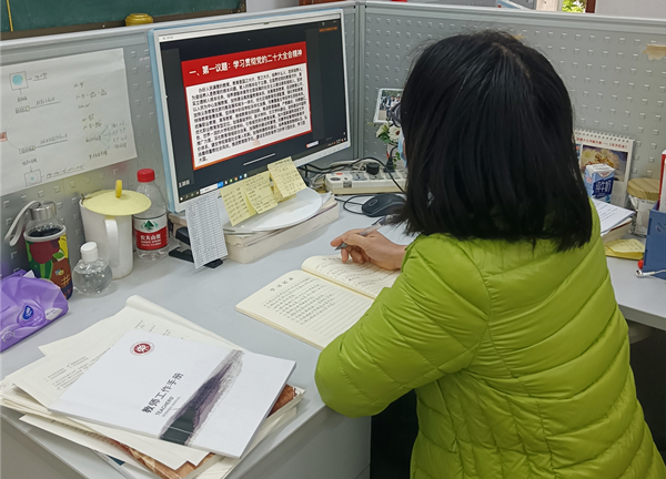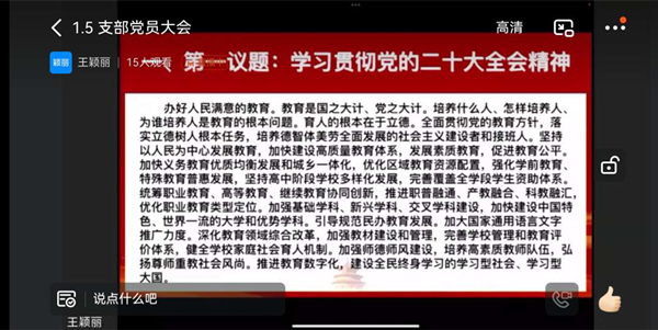 會議嚴格落實“第一議題”制度,王穎麗同志首先帶領大家深入學習黨的二十大精神。她指出,黨的二十大報告首次將科教興國戰(zhàn)略單獨成章,對教育強國、人才強國、科技強國建設作出了一系列重大部署,充分體現(xiàn)了教育與人才工作的重要戰(zhàn)略地位。作為黨員教師,我們責任重大,使命光榮,更要堅持用習近平新時代中國特色社會主義思想凝心鑄魂,肩負起教書育人的初心使命,為辦好人民滿意的教育貢獻自己的力量。