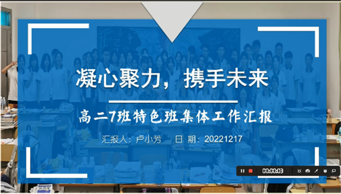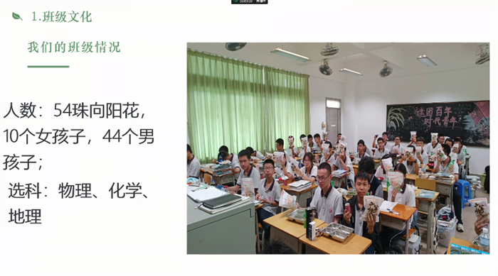 本次活動共有4位班主任參加評選,由林麗娜副校長、德育處符曉主任、蔡昌盛主任,團委程超書記以及班主任梁可盈老師、鐘檢秀老師擔任評委,全體班主任參與投票。參賽的班主任們錄制精美的班級介紹視頻進行展示,評委們觀看視頻進行評選打分。