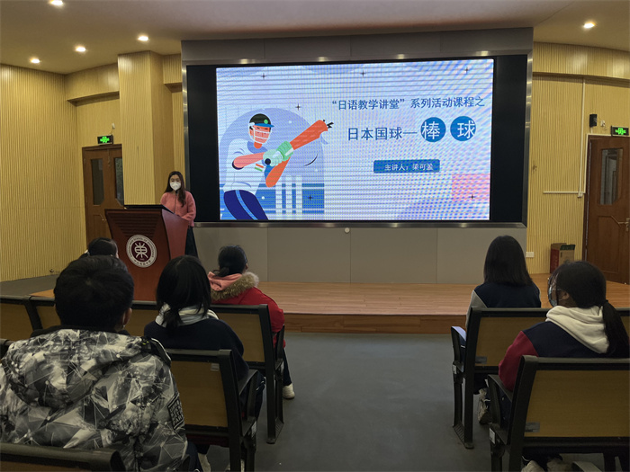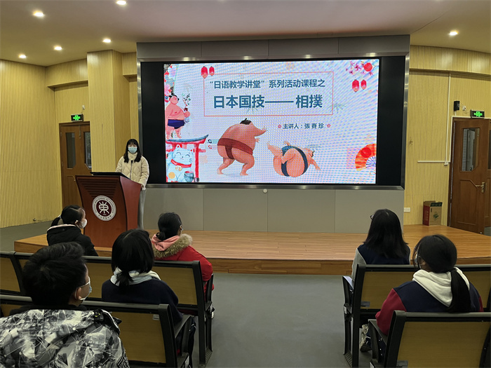 此外,為豐富校園文化生活,發(fā)掘?qū)W生課外興趣,打造日語教學(xué)的第二課堂,梁可盈老師和張賽珍老師在會后分別繼續(xù)開展“日語教學(xué)講堂”系列活動課程——棒球文化和相撲文化。梁可盈老師指出,棒球運(yùn)動是被譽(yù)為最講禮儀、最講感恩的運(yùn)動。棒球精神與中國文化在無形中達(dá)成了一種契合。希望大家能夠感悟棒球精神,學(xué)會感恩、守規(guī)矩、講禮貌。張賽珍老師通過有趣的視頻和圖片帶大家走入相撲的世界,帶領(lǐng)大家深入地了解蘊(yùn)含在相撲背后的體育競技精神。