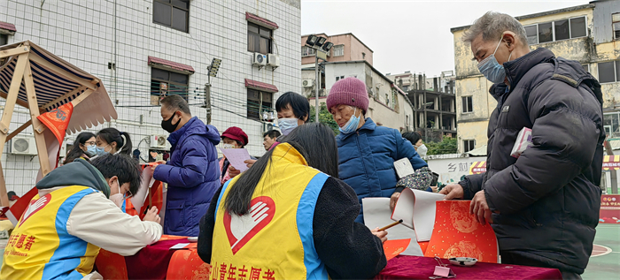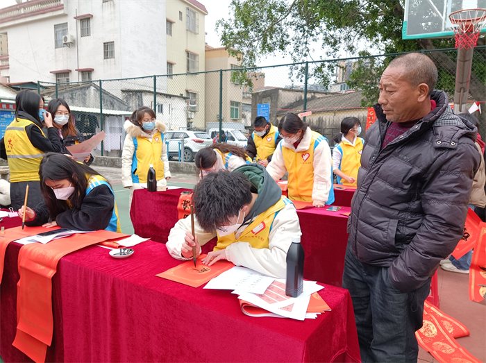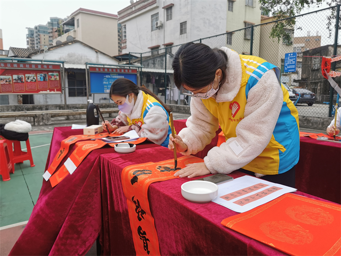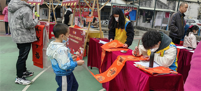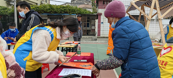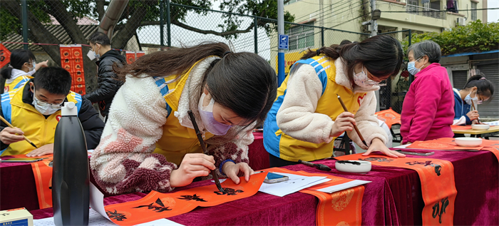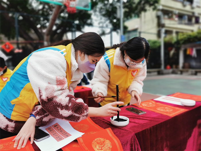 天氣雖然濕冷,但是現(xiàn)場卻是暖意涌動的。紅紅的春聯(lián)、濃濃的祝福、一張張開心的笑臉繪成了一幅幅喜慶祥和的畫面。這次“青春情暖,揮春到家”志愿服務(wù)活動不僅豐富了學(xué)生的生活,也讓學(xué)生在活動中鍛煉了現(xiàn)場創(chuàng)作書法的心態(tài),更為社區(qū)居民送去了新年的祝福,為喜迎傳統(tǒng)佳節(jié)營造了濃郁的節(jié)日氛圍。