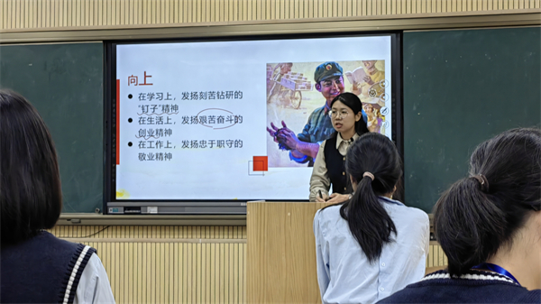 學(xué)習(xí)雷鋒同志“向上”的人生姿態(tài),鄭老師結(jié)合生情、校況,引導(dǎo)同學(xué)在學(xué)習(xí)上,發(fā)揚(yáng)刻苦鉆研的“釘子”精神,以“擠”“鉆”的勁兒,克服各種困難;在生活上,發(fā)揚(yáng)艱苦奮斗的創(chuàng)業(yè)精神,提醒同學(xué)們要保持樸素的優(yōu)良生活作風(fēng),勤儉節(jié)約,艱苦奮斗;在工作上,發(fā)揚(yáng)忠于職守的敬業(yè)精神,啟示同學(xué)們腳踏實(shí)地,求真務(wù)實(shí),努力做好本職工作,將小我融入大我,實(shí)現(xiàn)自我價(jià)值與社會(huì)價(jià)值的統(tǒng)一。