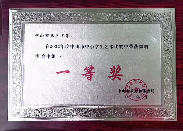 2023年3月26日,由中山市教育和體育局主辦的“中山市中小學舞蹈比賽”在三鄉(xiāng)鎮(zhèn)人民政府落下帷幕。中山市東區(qū)中學音樂科組長廖宜老師指導的作品《云端課堂》在中山市中小學舞蹈比賽中以91.6分榮獲高中組一等獎。這是繼東區(qū)中學舞蹈作品《在路上》、《寒蟬蛻鳴》在前幾屆舞蹈賽事中取得全市一等獎后代表中山在廣東省第六、七屆中小學生藝術(shù)展演舞蹈比賽中獲省獎的又一部力作。